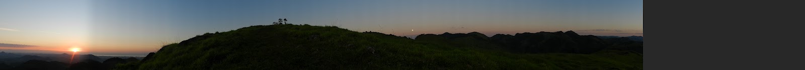 Esta foto acima, embora tenha truncado, foi tirada com um recurso de foto panorâmica de 360°, possibilitando mostrar, na mesma foto, o sol nascendo e a lua se pondo.
